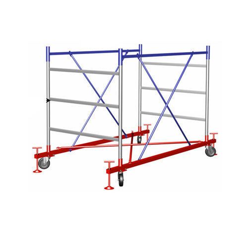 Базовый блок состоит из двух баз с колесами и опорами. Базы скрепляются между собой по диагонали перекладиной. Затем в патрубки вставляют пропорциональные лестницы, составляя секцию за секцией. В собранном виде конструкция выглядит в виде башни, то есть - вышка тура строительная. При эксплуатации, вышка должна стоять на опорах, которые расположены на базовом блоке, а не на колесах. Эти опоры позволяют восполнить не ровное основание.