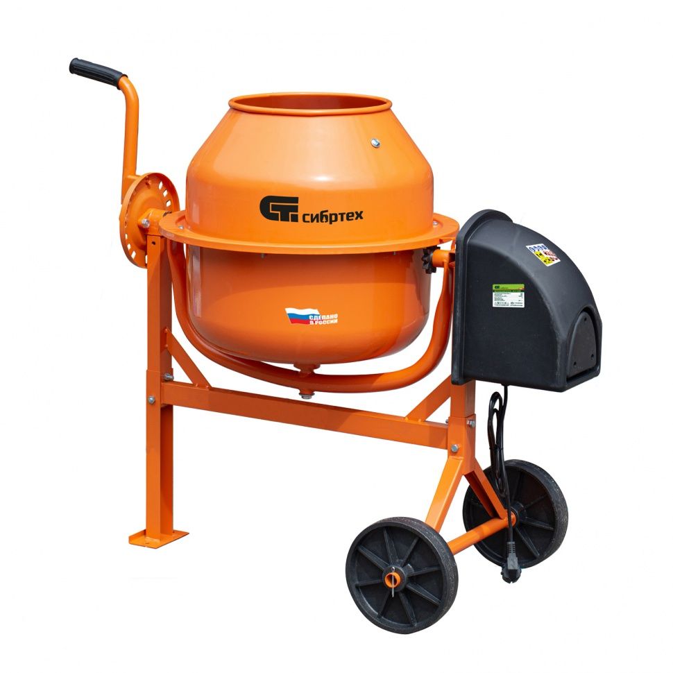 Бетоносмеситель Сибртех БСЛ-63 95469 объемом 63 литра и мощностью 300 Вт применяется при производстве штукатурки для отделки стен, подвижных бетонных растворов для работ с фундаментом и стяжки пола, клеевых смесей для укладки плитки. Малый размер барабана позволяет использовать устройство в небольших помещениях, без труда перемещая его в нужное место. При максимально допустимом заполнении на выходе получится до 40 л готовой смеси. Венец из прочной перфорированной стали выдерживает несколько рабочих циклов с небольшими перерывами, что позволяет ускорить процесс работы. ПреимуществаГрушевидный бак — расширенная форма обеспечивает тщательное перемешивание растворов и снижает нагрузку на подшипники. Разборная конструкция — барабан выполнен из двух частей, что облегчает его транспортировку и хранение. Безопасность — прочный пластиковый кожух защищает привод от механических повреждений, а пользователя — от ожогов. Защита электронных компонентов — кожух из мягкого прозрачного пластика предотвращает попадание воды и грязи на кнопки управления. Быстрая подготовка к работе — бак с траверсой собраны в единый узел на заводе, поэтому не нужно тратить время на их сборку и зацепление венца с ведущей шестерней. Прочность — опорная рама усилена металлическими подкосами, поэтому уверенно принимает на себя вес даже максимально загруженного барабана (примерно 75%). Надежность — траверса соединена с рамой с полным охватом осей в 360°, это делает конструкцию невосприимчивой к вибрациям и позволяет выдерживать переменные нагрузки. Удобная загрузка и разгрузка бака — ножная педаль помогает зафиксировать барабан под необходимым углом наклона. Надежный и долговечный рабочий узел — втулка ведомого шкива выполнена из стали. Ремонтопригодные детали — узел оси бака, который принимает на себя наибольшую нагрузку, легко снимается, это позволяет без труда менять подшипники при необходимости. Удобное перемещение по рабочей площадке — бетоносмеситель оснащен колесами диаметром 20,5 мм.