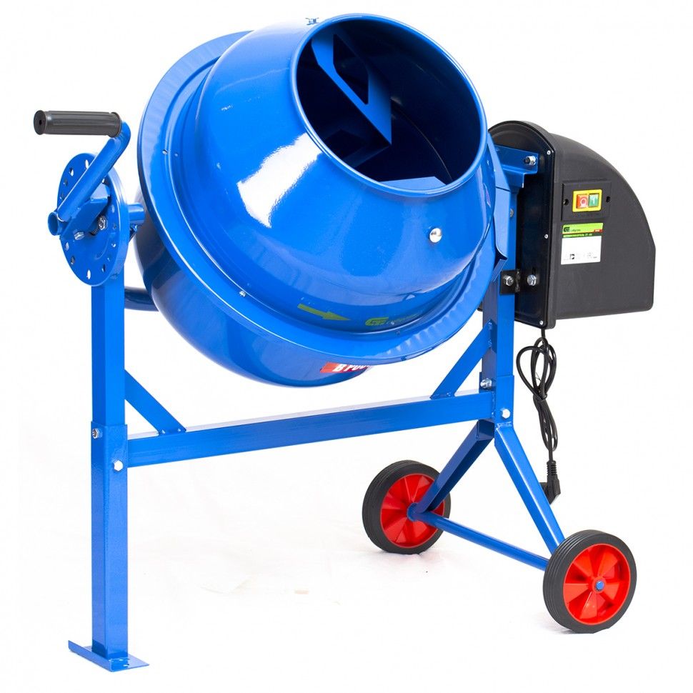 Бетоносмеситель Сибртех СТ-65 95402 мощностью 300 Вт, с объемом бака 63 л, пригодится для замешивания растворов и смесей при заливке фундамента и полов, укладке плитки и кирпича. Устройство выдерживает большие нагрузки и имеет увеличенный ресурс работы 2200 часов, а время наработки на отказ составляет 300 часов. Объем барабана 63 л позволяет на выходе получить 40 л смеси. Компактность бетономешалки позволяют использовать ее на даче или в гараже. ПреимуществаНадежность и высокий ресурс — основные элементы конструкции выполнены из стали, толщина стенок барабана составляет 1,2 мм. Термозащита — отключение двигателя при перегреве предотвращает его поломку. Безопасная работа — прочный кожух предохраняет привод от повреждений и не допускает попадания воды на электронные компоненты. Эффективность — широкая форма барабана позволяет качественно перемешивать смесь, минимизируя нагрузку на подшипники. Коррозионная стойкость — бак покрыт порошковой краской для защиты от воздействия влаги. Продуманная конструкция — бетоносмеситель выдерживает вибрации и переменные нагрузки, а усиленная рама с подкосами и металлической опорой обеспечивает устойчивость во время работы. Ремонтопригодность — разъемный узел оси барабана позволяет легко заменить подшипники при необходимости. Простое использование — возможность изменения и фиксации угла наклона барабана облегчает приготовление и выгрузку смеси. Быстрая подготовка к работе — узел крепления барабана уже собран на заводе, поэтому установка бетономешалки не занимает много времени. Удобная транспортировка — крупные колеса упрощают перемещение бетоносмесителя по рабочей площадке.