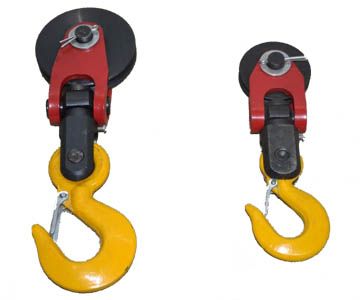 Монтажные блоки всех грузоподъемностей изготавливаются в двух вариантах: с осью и с крюком. Блоки грузоподъемностью 1000 кг изготавливаются в трех вариантах: с осью, с крюком, с осью и крюком.