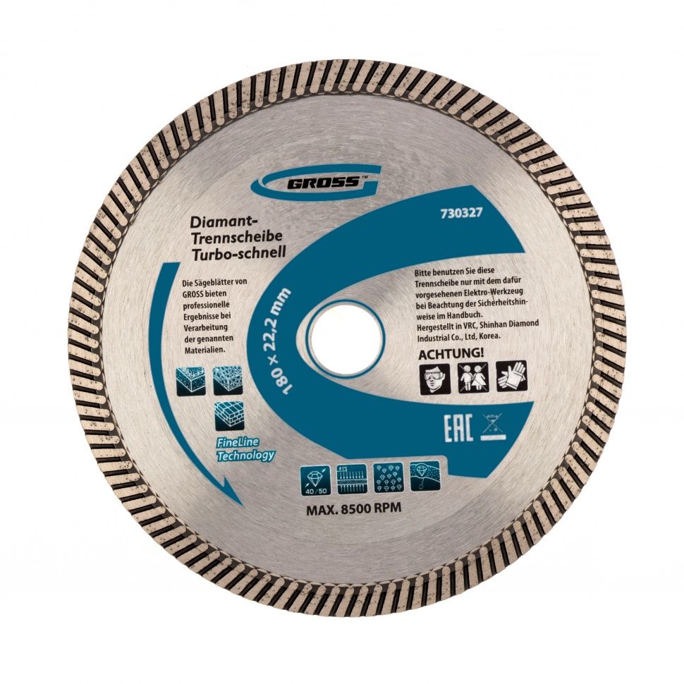 Диск алмазный, 180 х 22.2 мм, турбо, сухая резка Gross