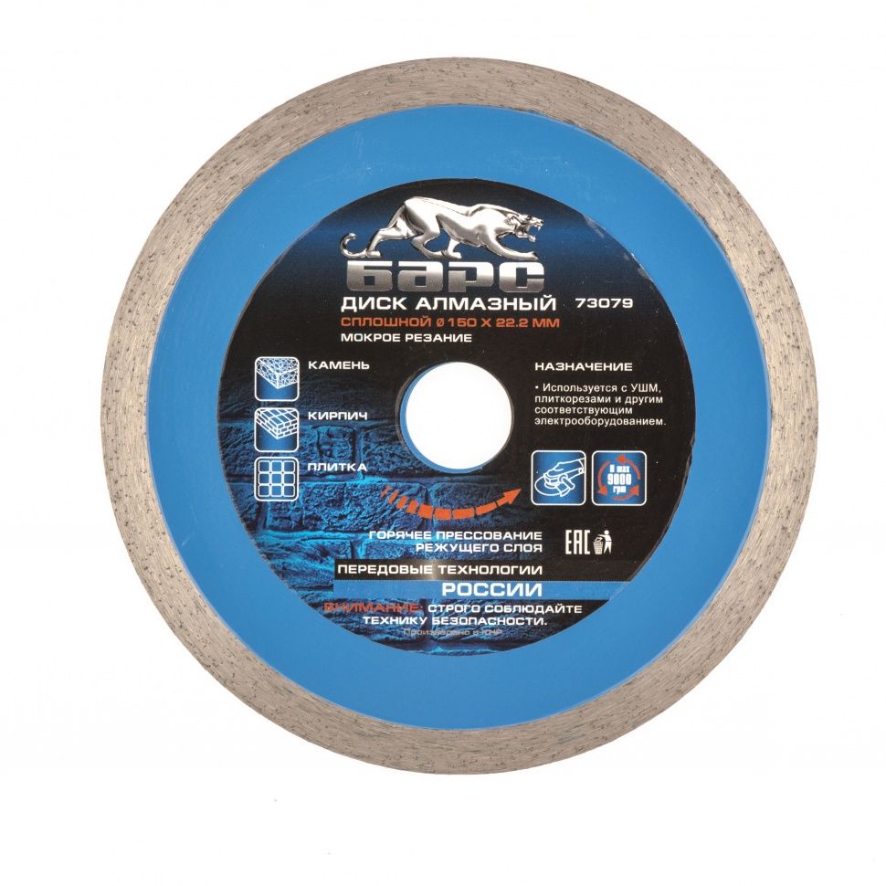 Диск алмазный, сплошной 150 х 22.2 мм, мокрая резка Барс