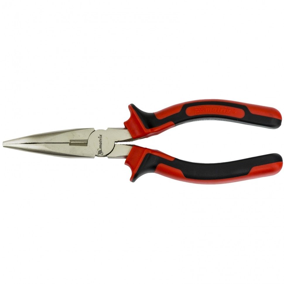 Длинногубцы изогнутые Nickel, 180 мм, никелированные, двухкомпонентные рукоятки Matrix