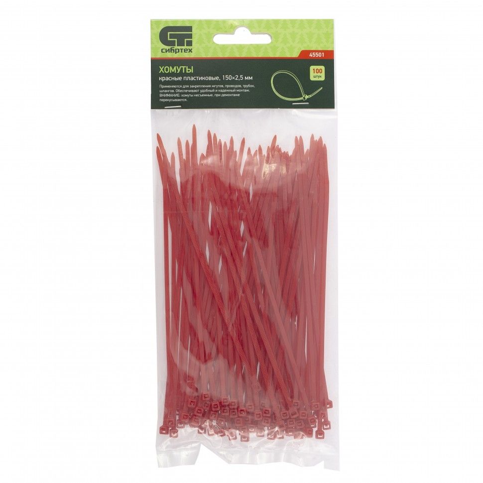 Хомуты, 150 x 2.5 мм, пластиковые, красные, 100 шт Сибртех