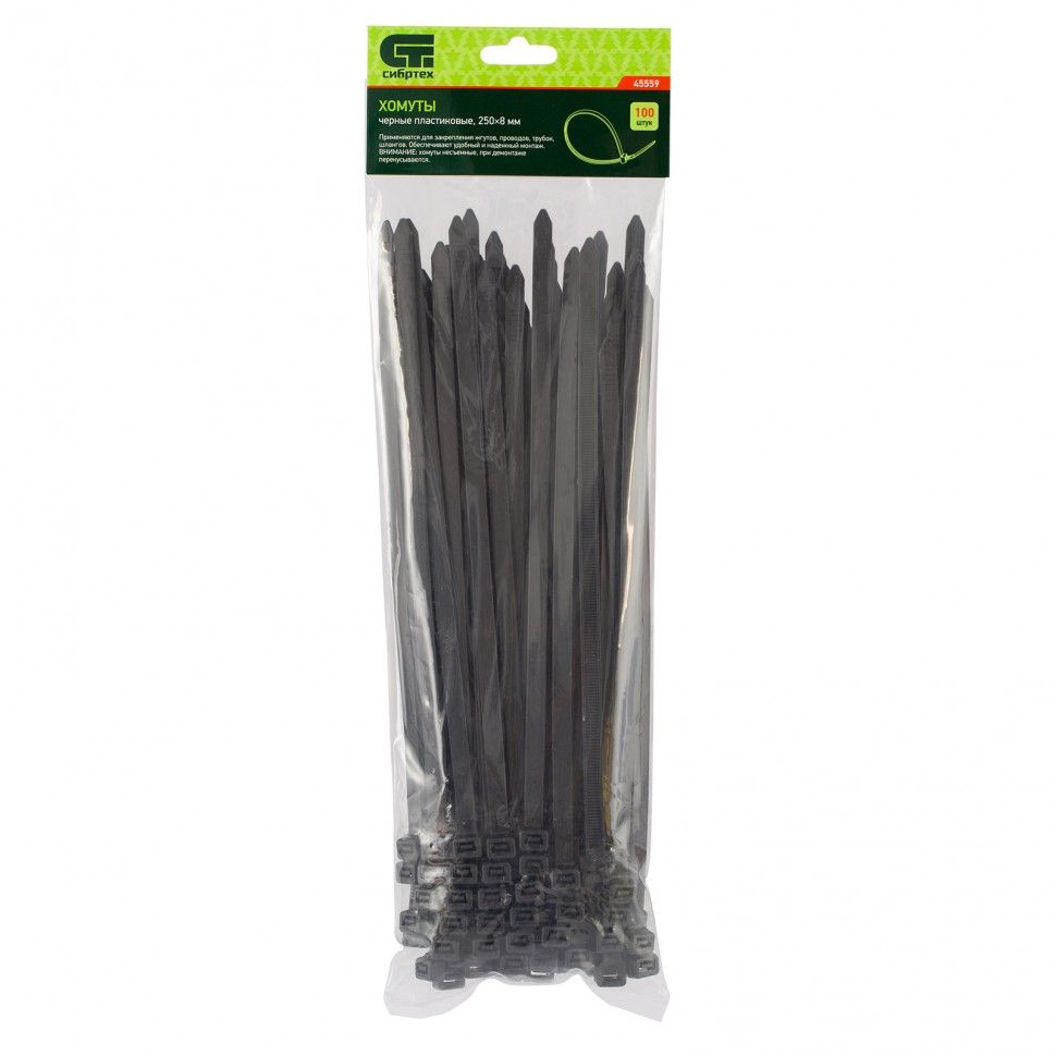 Хомуты, 250 х 8 мм, пластиковые, черные, 100 шт Сибртех