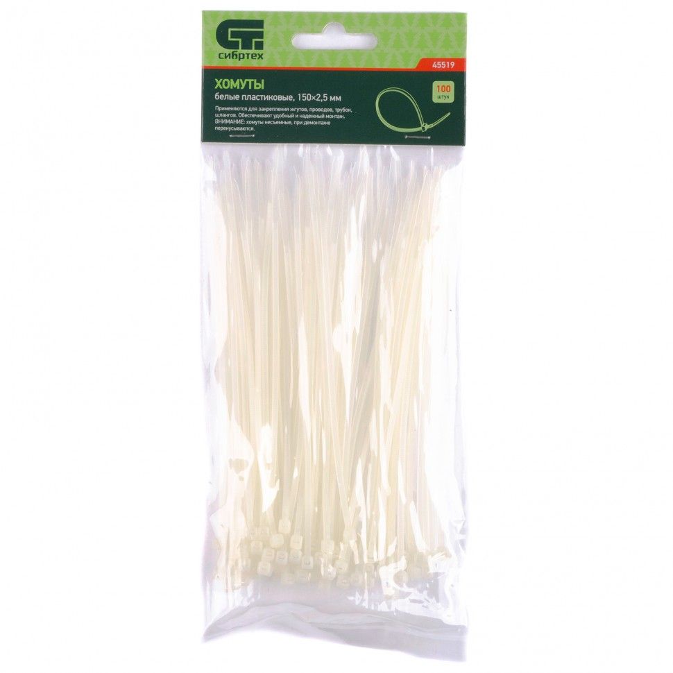 Хомуты пластиковые 150х2,5мм, белые, 100 шт.// Сибртех