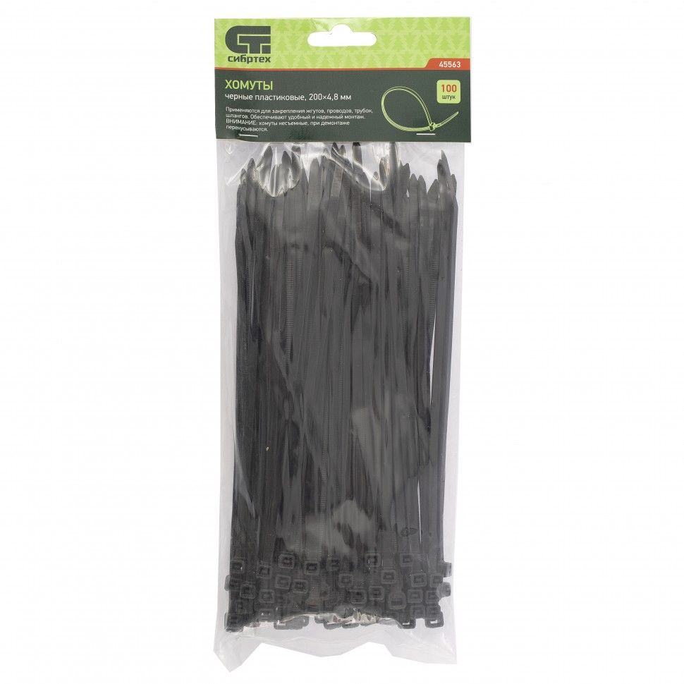 Хомуты пластиковые 200х4,8мм, черные, 100 шт// Сибртех