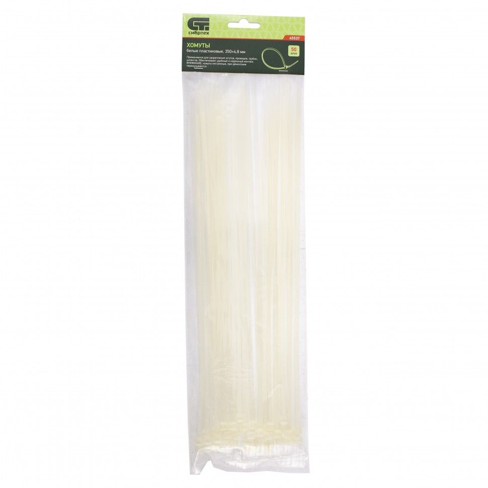 Хомуты пластиковые 350х4,8мм, белые, 50 шт.// Сибртех