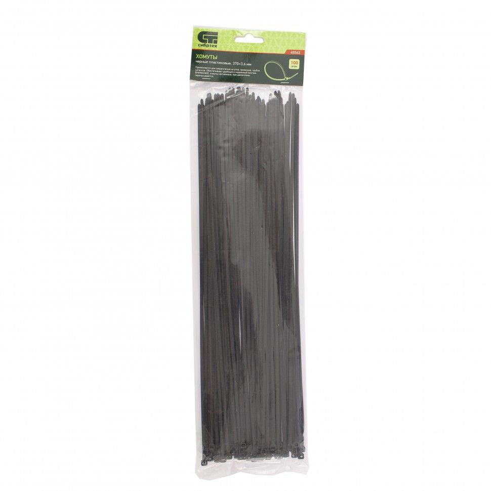 Хомуты пластиковые 370х3,6мм, черные, 100 шт.// Сибртех
