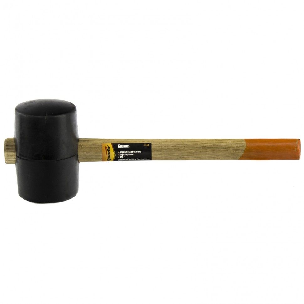 Резиновая киянка Sparta 111605 из черной резины, с деревянной рукояткой и бойком весом 910 г, используется при укладке плитки и ламината, рихтовке металла, сборке мебели. Профессиональный инструмент хорошо амортизирует удар, что позволяет эффективно решать поставленные задачи. ПреимуществаНадежность — боек крепится к ручке на протяг, что предотвращает его срыв во время работы. Механическая прочность — рабочая часть выполнена из резины твердостью 80 ед. по Шору. Защита от разрушения — бесцветное лаковое покрытие предотвращает рассыхание деревянной рукоятки.