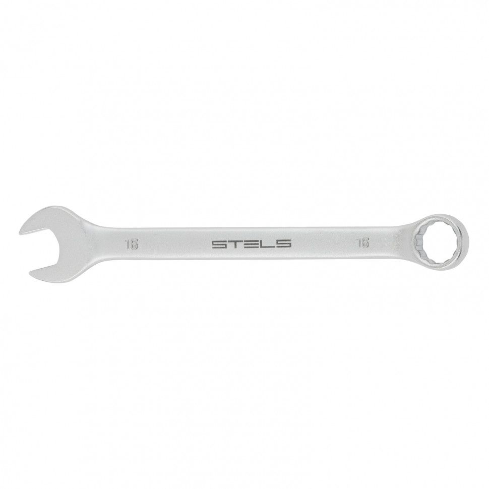 Ключ комбинированный, 16 мм, CrV, матовый хром Stels