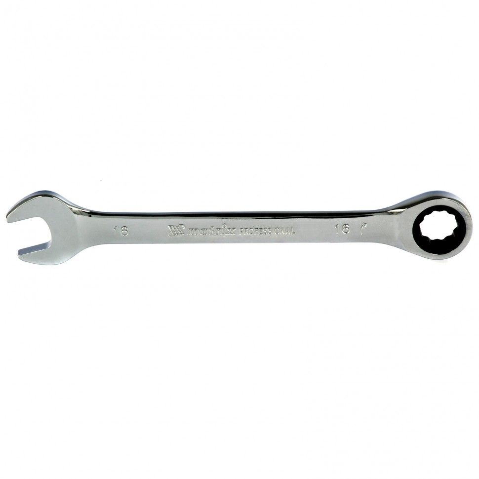 Ключ комбинированный трещоточный, 16 мм, CrV, зеркальный хром Matrix Professional