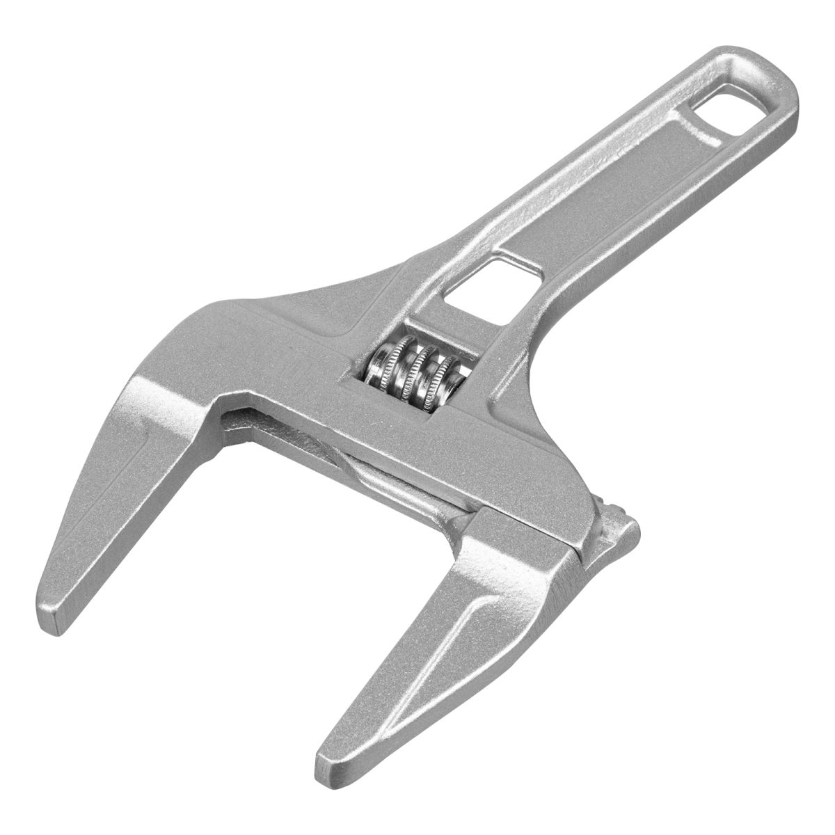 Ключ разводной алюминиевый Denzel 15755 длиной 205 мм, с тонкими губками, оптимален для монтажа и демонтажа хромированных и пластмассовых крепежных элементов. Используется при выполнении сантехнических работ. ПреимуществаАккуратная работа — ключ изготовлен из коррозионностойкого алюминия и не повреждает крепеж. Эффективная работа с мелким и крупным крепежом — диапазон раскрытия губок увеличен до 70 мм. Удобное хранение — в рукоятке предусмотрено отверстие для подвешивания инструмента.