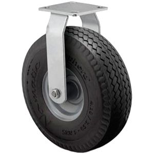 Колеса пневматические неповоротные с площадкой и стальным ободом представляют собой обычные пневматические колеса с металлическим ободом, доукомплектованные неповоротной опорой с креплением площадочного типа. Главная отличительная черта – возможность движения по криволинейной траектории. Сфера их применения – комплектация различного передвижного оборудования (тележки, тачки, подвижные платформы и т.д.).
