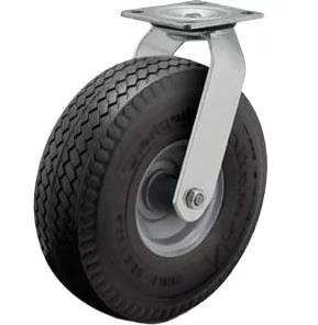 Колеса пневматические поворотные с площадкой и стальным ободом представляют собой обычные пневматические колеса с металлическим ободом, доукомплектованные поворотной опорой с креплением площадочного типа.