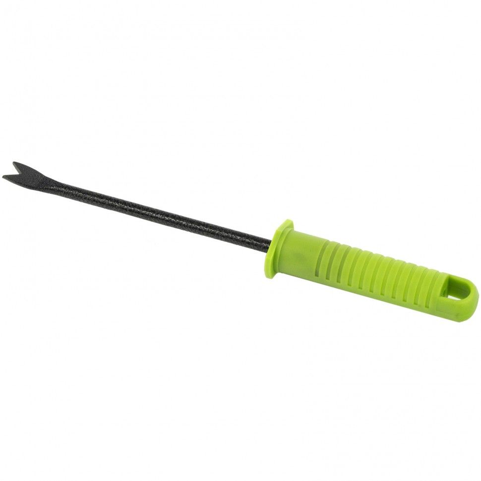 Стальной корнеудалитель Palisad STANDARD 62386 длиной 295 мм, с пластиковой рукояткой, позволяет быстро удалять сорняки на клумбах и грядках. Благодаря двузубой вилке он легко проникает в почву и аккуратно извлекает корни, не повреждая соседние растения. Инструмент пригодится дачникам и огородникам. ПреимуществаПрочность и износостойкость — корнеудалитель изготовлен из среднеуглеродистой стали, рабочая часть покрыта порошковой эмалью для защиты от коррозии. Комфортная работа — корнеудалитель весит всего 100 г, а его рифленая рукоятка не выскальзывает из ладони. Удобное хранение — в рукоятке имеется отверстие для подвешивания на крючок или гвоздь.