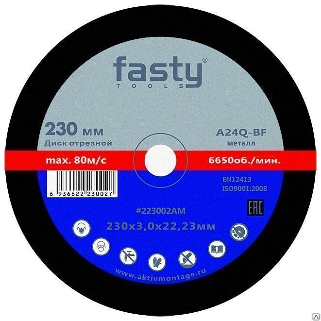 Круг отрезной по металлу A24Q-BF чешской торговой марки Fasty сочетает в себе высокое европейское качество и доступную цену. Он изготовлен на основе синтетической смолы с упрочняющими сетками, в его составе отсутствует железо, сера и хлор.