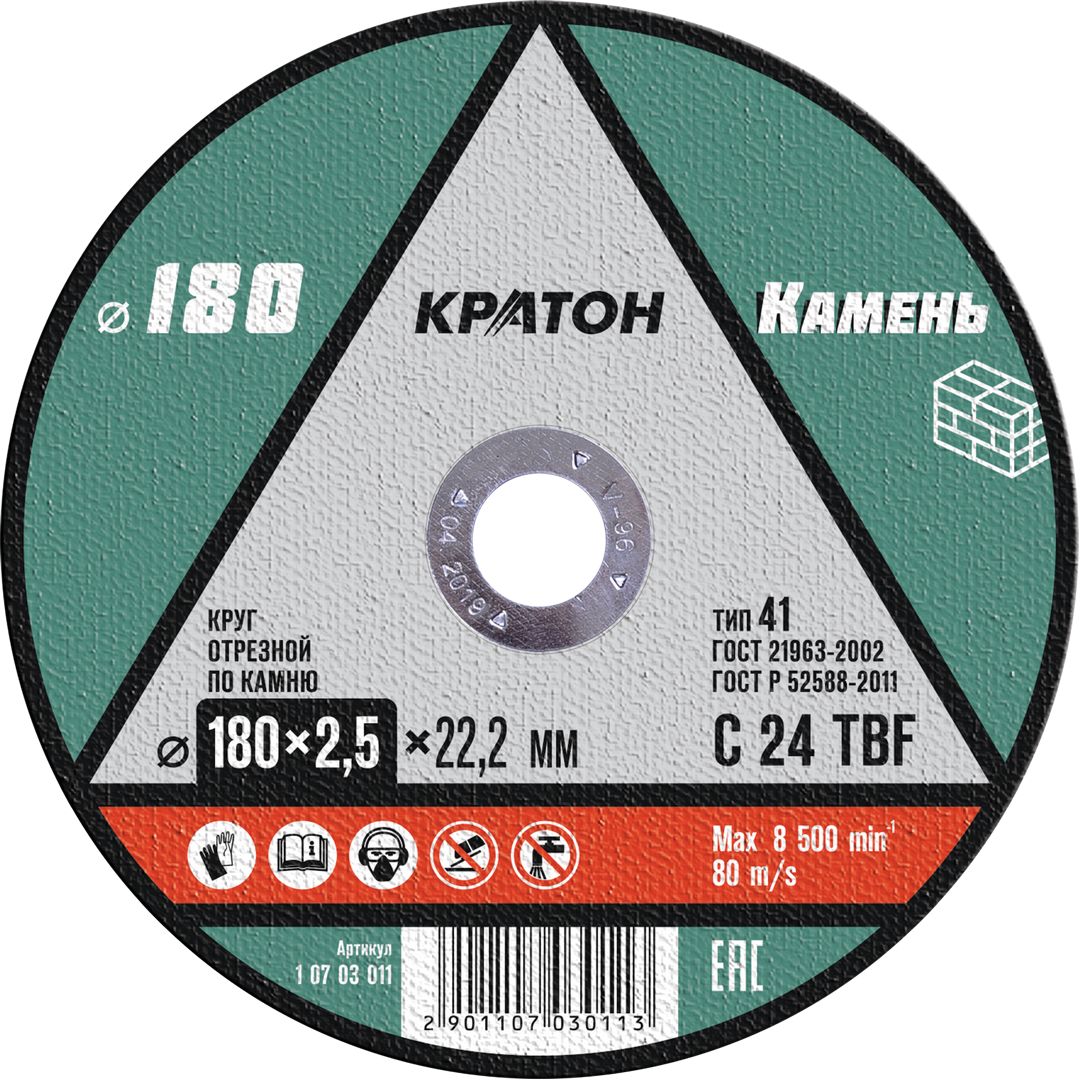Круг отрезной по камню Кратон C 24 TBF 180х2,5х22,2 мм