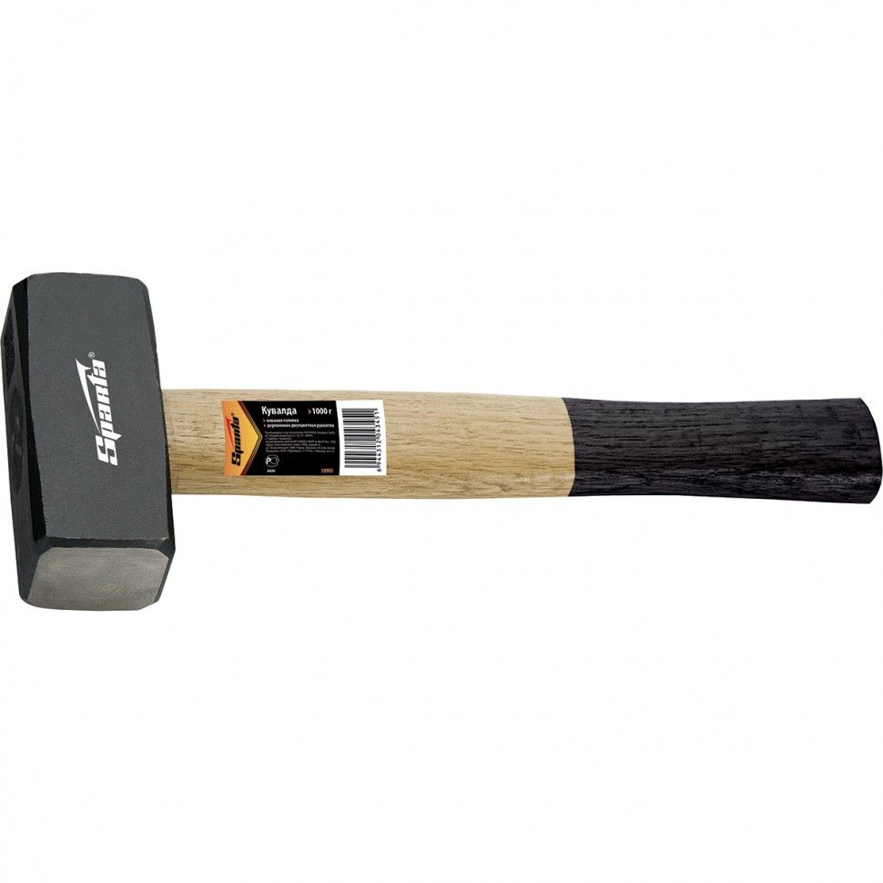 Кувалда Sparta 10907 длиной 310 мм, с бойком весом 1500 г, кованой головкой и деревянной двухцветной рукояткой, — ударный инструмент, которым можно наносить аккуратные контролируемые удары, чтобы выправить форму детали, забить большой гвоздь или скобу. Слегка выпуклый боек, изготовленный методом ковки и отшлифованный с двух сторон, отличается надежностью. Кувалда используется в быту для проведения строительных работ и ремонта автомобилей. ПреимуществаДеформационная стойкость — боек из среднеуглеродистой стали 45, закаленной токами высокой частоты до твердости 40-45 HRC, не расколется и не расплющится при ударе о металл. Безопасная работа — с граней ударных поверхностей сняты фаски, что предотвращает откалывание мелких частиц во время работы. Устойчивость к разрушению — лакированная деревянная рукоять не рассыхается, голова кувалды покрыта черным лаком для защиты от коррозии. Надежная фиксация бойка — рукоятка расклинена в голове и залита смолой. Комфортная работа —деревянная рукоять не выскальзывает из ладони.
