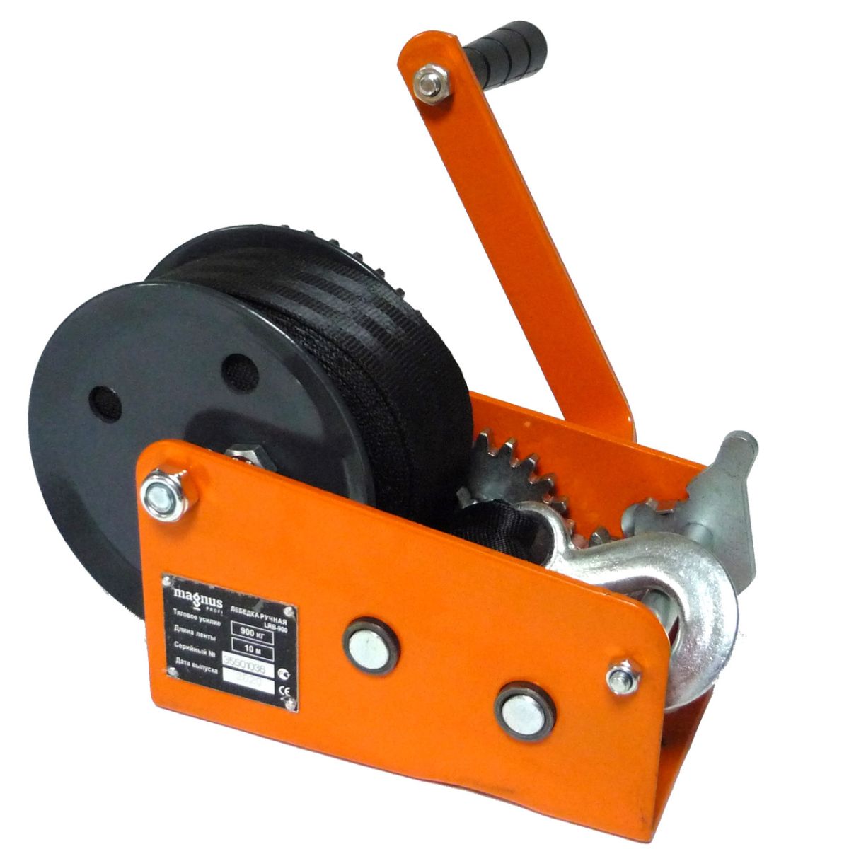 Лебедка ручная барабанная LRB-900, 900 кг, лента 10м