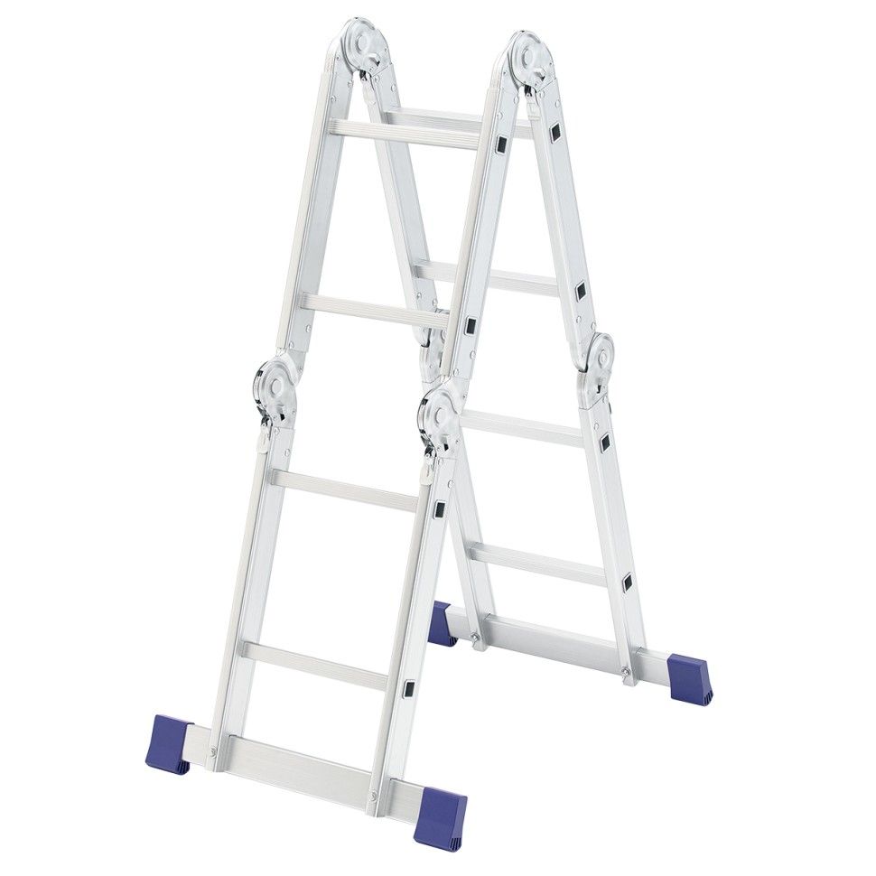Шарнирная алюминиевая лестница Сибртех 97879 представляет собой 4 секции по 2 ступени, которые можно настроить в нескольких рабочих положениях. Она может использоваться в качестве приставной лестницы, двухсторонней стремянки и помоста. Будет полезна как в быту, так и на небольших стройках, в гараже и магазинах. ПреимуществаШирокие траверсы — лестница устойчиво фиксируется на горизонтальной поверхности в любом рабочем положении. Противоскользящее рифление на ступенях — пользоваться лестницей безопасно, нога не соскользнет в процессе выполнения работ. Сочетание легкости и прочности — рама изготовлена из прессованного алюминиевого профиля прямоугольного сечения, выдерживает нагрузку до 120 кг. Надежные шарнирные механизмы — лестница не шатается в рабочих положениях, смена рабочих положений происходит быстро и легко. Габариты в сложенном состоянии 660 х 340 х 280 мм — лестницу удобно хранить и транспортировать.