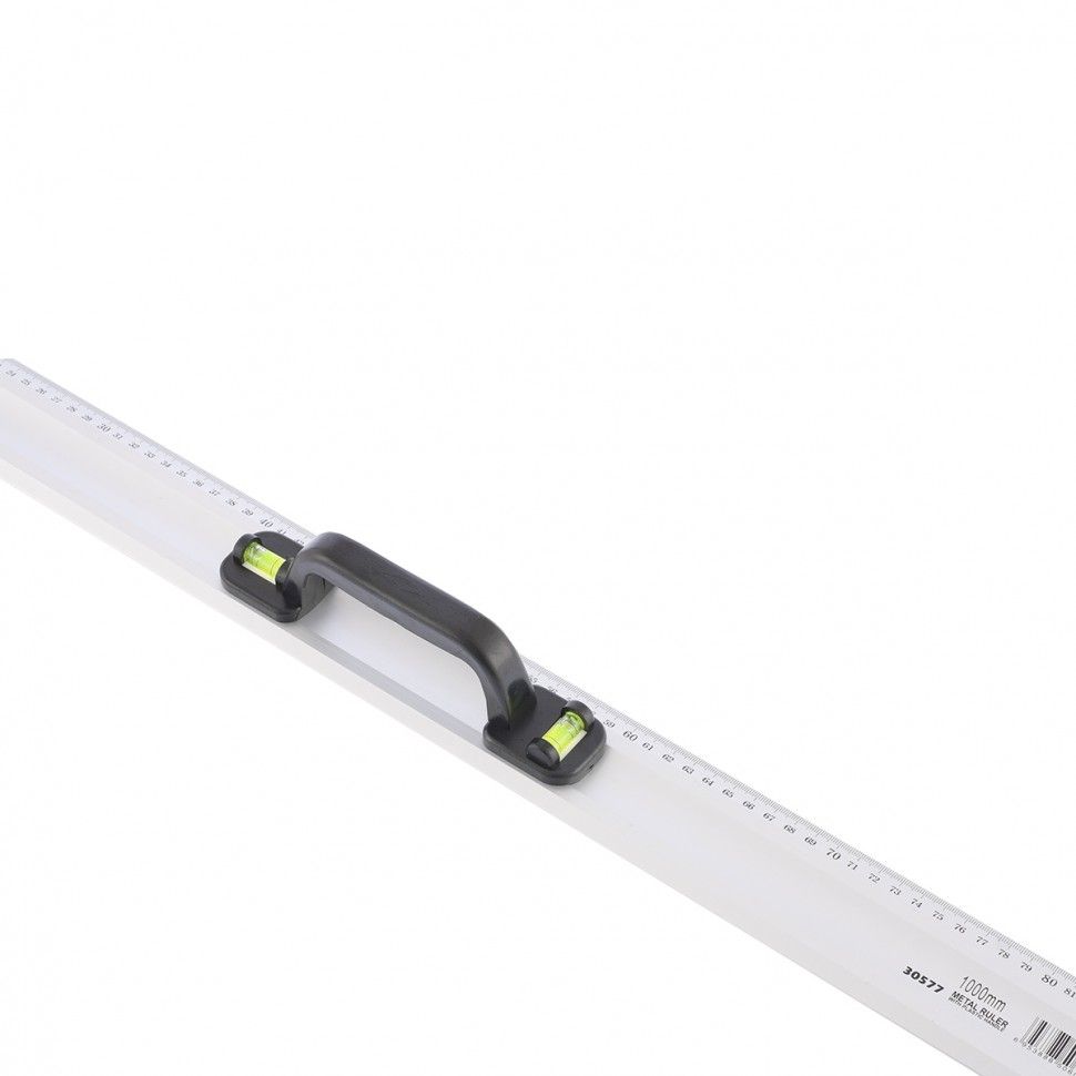 Металлическая линейка-уровень Matrix 30577 с пластмассовой ручкой и 2 глазками имеет шкалу длиной 1000 мм и предназначена для разметки материалов и измерения различных предметов. 2 жидкостных глазка позволяют определить степень отклонения поверхностей от вертикали и горизонтали. Линейка используется во время строительных и ремонтных работ, также будет полезна при установке мебели и монтаже навесного оборудования. ПреимуществаДеформационная стойкость — линейка-уровень изготовлена из жесткого алюминиевого профиля, усиленного ребрами жесткости. Удобное считывание результатов измерения — четкая шкала хорошо видна даже при длительной эксплуатации. Комфортная работа — инструмент снабжен удобной пластмассовой рукояткой.