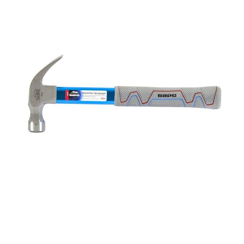 Молоток-гвоздодер 450 г, фибергласовая обрезиненная рукоятка, алюминиевая защита Барс