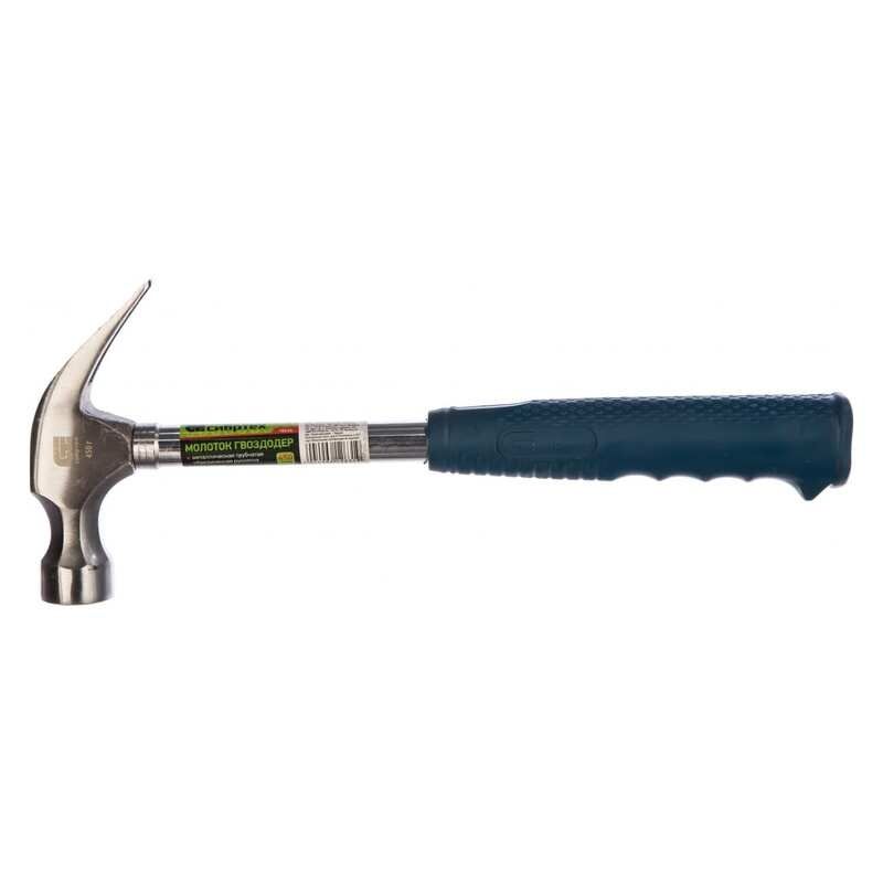 Молоток-гвоздодер,металлическая трубчатая обрезиненная рукоятка, вес 450гр., боек 27мм//СИБРТЕХ