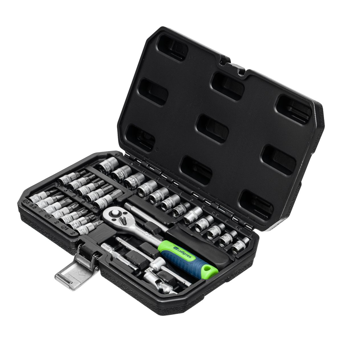 Набор инструментов, 1/4", пластиковый кейс, 29 предметов// Сибртех