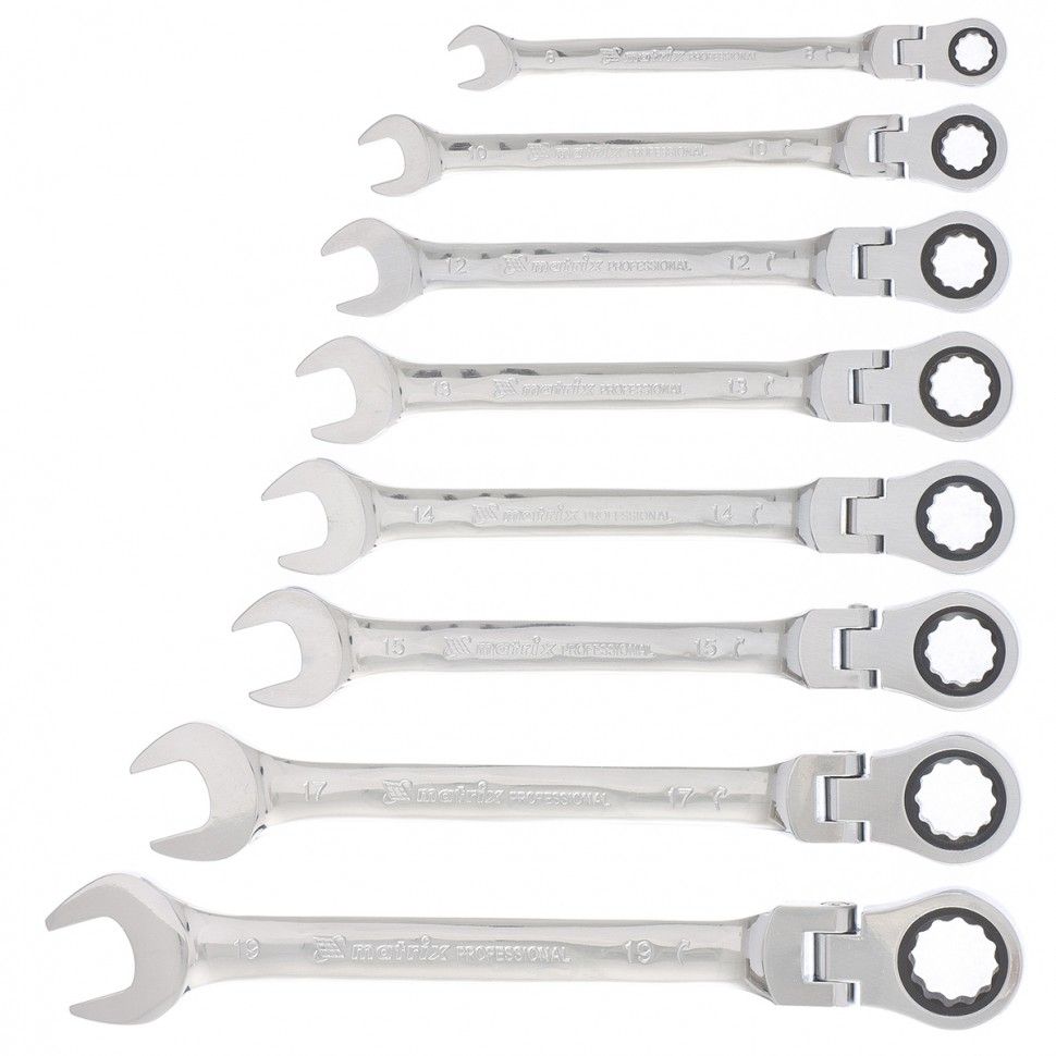 Набор ключей комбинированных, трещоточных шарнирных 8шт.// Matrix