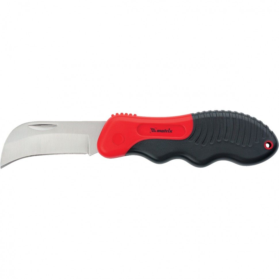 Нож электрика, складной, изогнутое лезвие, эргономичная двухкомпонентная рукоятка//MATRIX