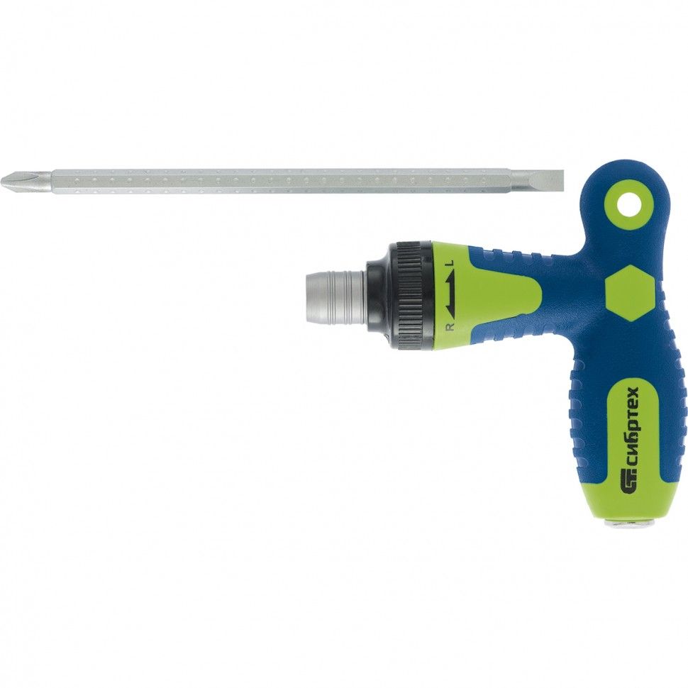 Отвертка реверсивная Т-образная комбинированная PH2/SL6, CrV Сибртех