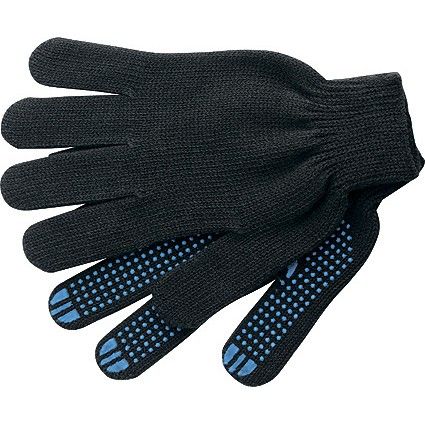 Черные трикотажные перчатки 67787 с ПВХ-покрытием «Точка», 10 класса вязки, защищают руки от царапин, порезов, ссадин, мозолей и загрязнений. Тонкая пряжа обеспечивает пальцам чувствительность, поэтому перчатки подходят для выполнения точных работ. Благодаря ПВХ-покрытию ладонной части инструменты не выскальзывают из рук. Перчатки используют в строительстве, на производстве, во время ремонта помещений и обслуживания автомобилей. Пригодятся они и в хозяйстве.ПреимуществаОснова выполнена из воздухопроницаемой хлопчатобумажной пряжи, поэтому руки в перчатках не потеют.В пряже содержится полиэфирная нить, что повышает прочность и эластичность перчаток.Покрытие из ПВХ препятствует истиранию, продлевая срок службы изделий.Манжеты плотно облегают запястья, обеспечивая удобную посадку перчаток на кистях рук.Материал перчаток не вызывает аллергии, поэтому их использование безвредно для здоровья.Перчатки не ограничивают движения пальцев, обеспечивая комфорт во время работы.