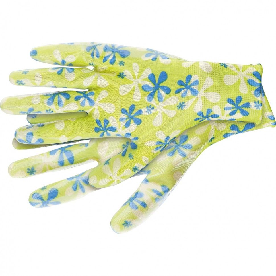 Зеленые садовые перчатки Palisad 67741 из полиэстера с нитрильным обливом, размер S, защищают руки от порезов, проколов, царапин, ссадин и намокания во время садово-огородных работ. Удобно садятся по руке, не стесняя движений. Перчатки пригодятся на дачном участке. ПреимуществаПолиэстер устойчив к истиранию и воздействию ультрафиолета, поэтому изготовленные из него перчатки прослужат долго. Нитрильное покрытие обеспечивает надежное сцепление с рабочей поверхностью, благодаря чему садовый инструмент не выскальзывает из рук. Эластичные манжеты плотно облегают запястья, поэтому перчатки не сползают с рук. Тонкое полотно обеспечивает хороший воздухообмен и тактильную чувствительность пальцев, что повышает комфорт во время работы. Края манжет обработаны на оверлоке, что предотвращает их распускание и продлевает срок службы перчаток. Материал основы не вызывает аллергии, поэтому использование перчаток безопасно для здоровья. Яркая расцветка привлекает внимание и повышает настроение, создавая благоприятную атмосферу во время работы.