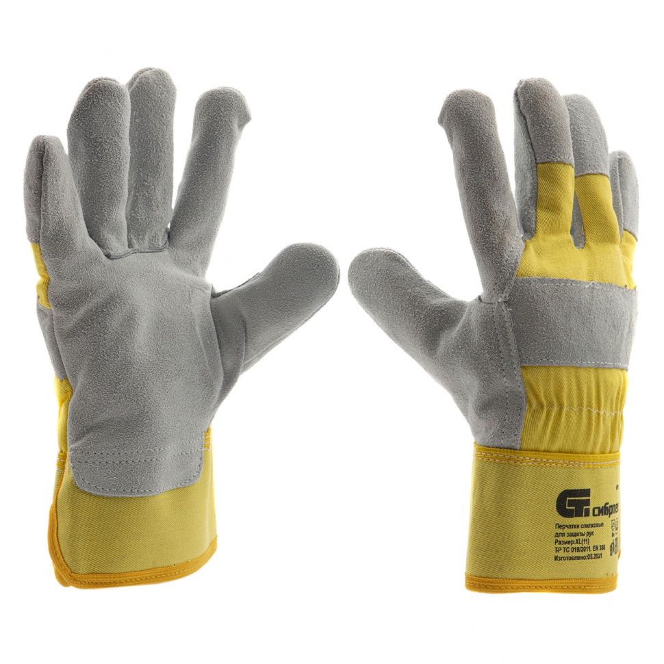 Перчатки спилковые комбинированные, усиленные, утолщенные, размер XL, Сибртех