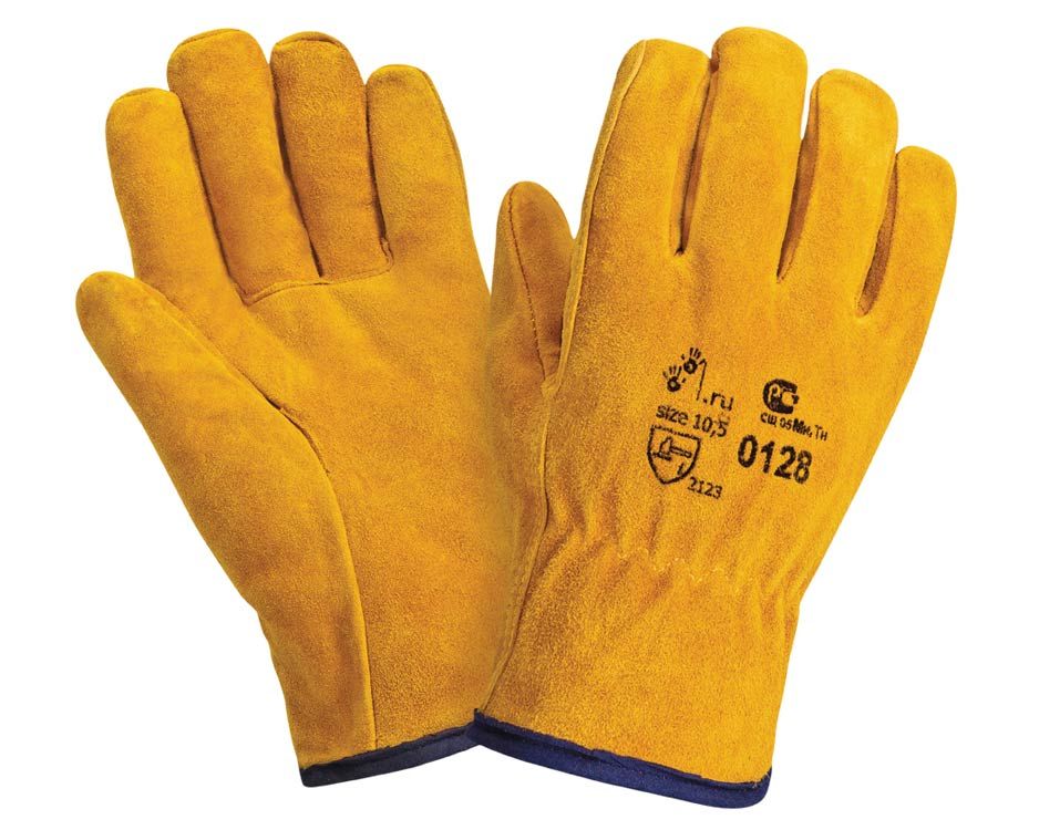 Перчатки из спилка желтого/золотого цвета. Спилок шлифованный, мягкий, перчатки снабжены резинкой на запястье. Предназначены для защиты рук от ОПЗ, истирания, обеспечивают высокий комфорт, рекомендованы для продолжительного ношения, при работе с инструментом, для водителей.