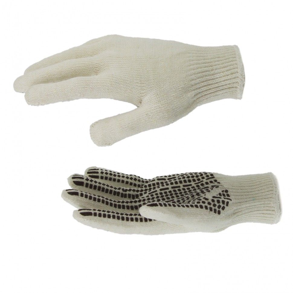 Трикотажные перчатки Сибртех 67778 с рисунком из ПВХ-геля «Протектор», обработанные оверлоком, предназначены для защиты рук от травм и загрязнений. Тонкое полотно 10 класса вязки сохраняет чувствительность пальцев, необходимую для выполнения точных работ. Гелевое ПВХ-покрытие препятствует выскальзыванию инструментов и различных деталей. Перчатки используются при проведении строительных, монтажных, механосборочных, автослесарных работ, также будут полезны в быту. ПреимуществаКомфорт во время работы — натуральная хлопчатобумажная основа обеспечивает хороший воздухообмен, поэтому руки не потеют. Прочность и эластичность — в пряжу добавлена полиэфирная нить, устойчивая к разрыву. Долговечность — покрытие из ПВХ-геля предохраняет изделия от истирания, а края манжет обработаны оверлоком, что повышает их износостойкость. Свобода движений — перчатки удобно садятся по руке. Надежная фиксация на кистях рук — эластичные манжеты плотно облегают запястья, препятствуя сползанию перчаток. Безопасность — материал перчаток не вызывает аллергии и безвреден для здоровья.