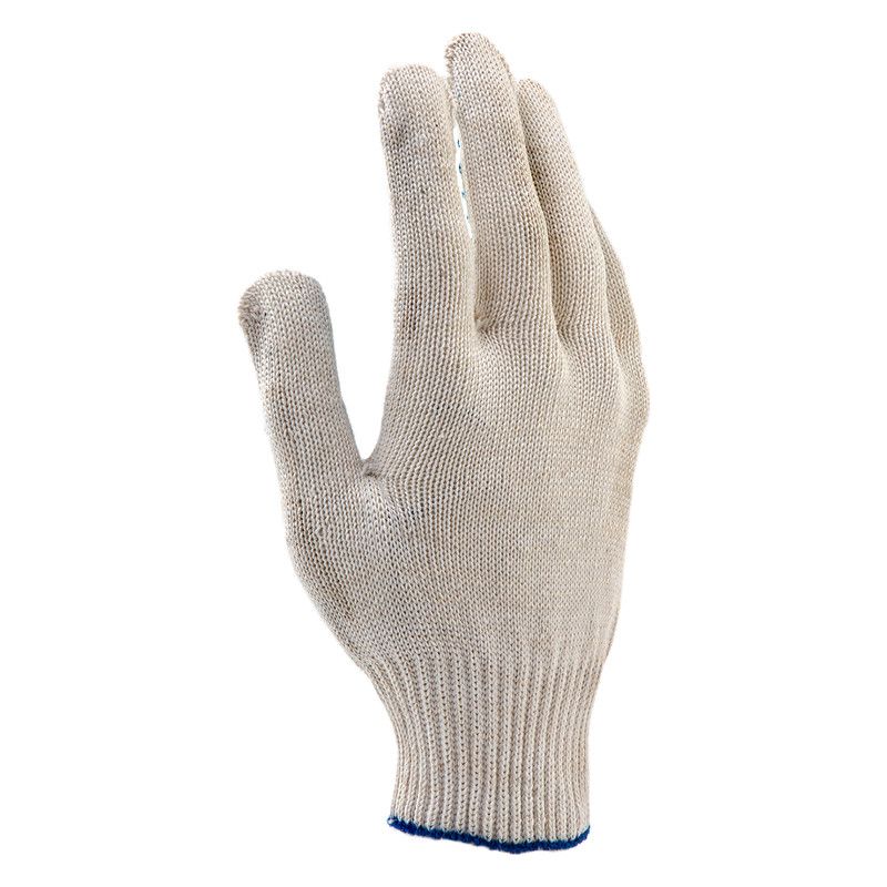Хлопчатобумажные перчатки 67716 с ПВХ-покрытием «Волна», 10 класса вязки, защищают руки от царапин, порезов, ссадин, мозолей и загрязнений. Тонкая пряжа сохраняет чувствительность пальцев, поэтому перчатки подходят для выполнения точных работ. Благодаря ПВХ-покрытию ладонной части инструменты не выскальзывают из рук. Перчатки используют в строительстве, на производстве, во время ремонта помещений и обслуживания автомобилей. Пригодятся они и в хозяйстве. ПреимуществаВоздухопроницаемость — основа выполнена из хлопчатобумажной пряжи, руки в перчатках не потеют. Прочность и эластичность — в пряже содержится полиэфирная нить. Длительный срок службы — покрытие из ПВХ препятствует истиранию ткани. Удобная посадка на кистях рук — манжеты плотно облегают запястья. Гипоаллергенность — использование перчаток безвредно для здоровья. Комфортное использование — перчатки не ограничивают движения пальцев.