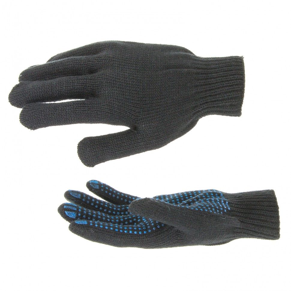 Трикотажные перчатки Сибртех 67701, содержащие акрил, с ПВХ-покрытием «Точка», 7 класса вязки, защищают руки от образования царапин, ссадин и мозолей. Могут использоваться при низких температурах, поскольку их основа на 70% состоит из акрила. Перчатки будут полезны на строительной площадке, складе, в автосервисе, а также дома или на даче. ПреимуществаДолговечность — перчатки плотной вязки изготовлены из высококачественных материалов, покрытие из ПВХ защищает их от истирания. Антискользящие свойства — на ладонную часть нанесено точечное ПВХ-покрытие, обеспечивающее надежный захват инструментов и других предметов. Гипоаллергенность — работа в перчатках безвредна для здоровья.