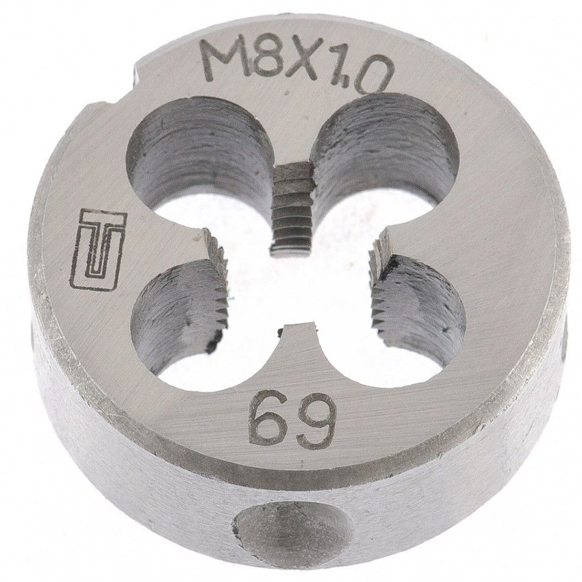 Плашка Сибртех 77019 типоразмера М8 х 1,0 мм предназначена для нарезания внешней метрической резьбы. Проста в использовании, поэтому пригодится даже начинающему мастеру для проведения слесарных и монтажных работ в быту. Цельная конструкция плашки позволяет полностью захватить деталь и нарезать высокоточную резьбу за один проход. ПреимуществаНадежность и долговечность — плашка изготовлена из инструментальной стали 9XC, режущие кромки закалены до твердости 60 HRC в соответствии с ГОСТом. Эффективная работа — плашка имеет 4 рабочие зоны, ей присвоен класс точности 6H, что соответствует европейским стандартам качества. Высокая скорость нарезки — глубокие зоны обеспечивают эффективный отвод стружки. Быстрый поиск нужной плашки — на корпусе имеется крупная маркировка с обозначением размера.