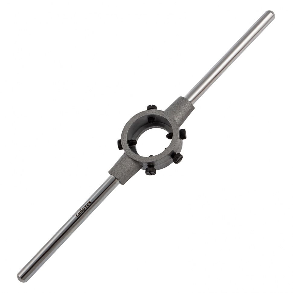 Плашкодержатель Сибртех 77438 предназначен для захвата плашек диаметром 38 мм. Пригодится для ручного нарезания резьбы при проведении слесарных и монтажных работ. Плашкодержатель позволяет приложить необходимое усилие для создания ровной резьбы. ПреимуществаПрочность и долговечность — плашкодержатель изготовлен из высококачественной инструментальной стали. Надежная фиксация и центровка плашек — инструмент оснащен стопорными винтами. Удобное хранение — конструкция выполнена разборной.