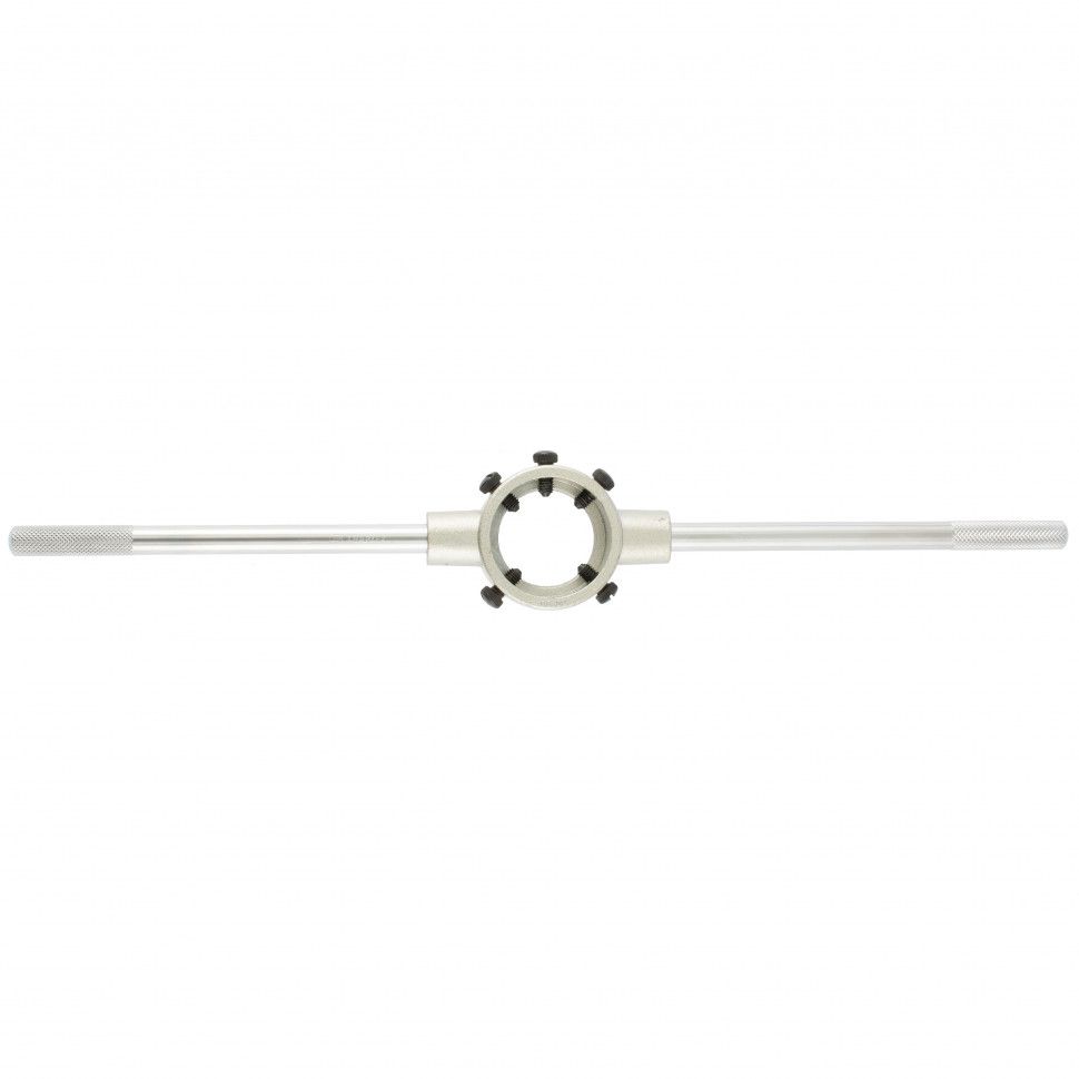 Плашкодержатель Сибртех 77455 предназначен для захвата плашек диаметром M16-24 мм. Пригодится для ручного нарезания резьбы при проведении слесарных и монтажных работ. Плашкодержатель облегчает работу и позволяет получить ровную резьбу. ПреимуществаПрочность и долговечность — плашкодержатель изготовлен из закаленной инструментальной стали. Надежная фиксация и центровка плашек — инструмент оснащен стопорными винтами. Удобное хранение — конструкция выполнена разборной. Комфортная работа — рифленые рукоятки не выскальзывают из рук.