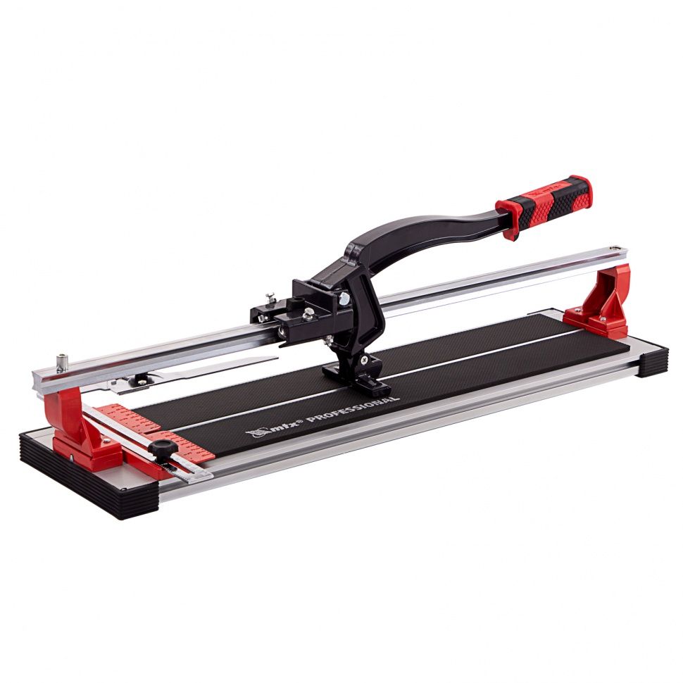 Рельсовый плиткорез MTX 87688 способен резать плитку длиной до 600 мм и толщиной до 16 мм для придания ей необходимых размеров. Мощный разделитель справляется с резкой не только керамической, но и керамогранитной плитки. Продуманная конструкция позволяет производить разлом в любой точке поверхности плитки. Инструмент используется во время проведения облицовочных работ. ПреимуществаЭффективная работа в течение длительного времени — режущий ролик выполнен из твердого сплава ВК-8. Плавный и легкий ход — в конструкции использован качественный направляющий рельс из стального сплава с антикоррозийным покрытием и надежный шарикоподшипниковый механизм. Резка под углом до 60° — производителем предусмотрен поворотный угольник-угломер, обеспечивающий также дополнительную фиксацию плитки. Максимальная устойчивость рукоятки при резке — прижимной обхват рельса каретки регулируется специальным болтами, что обеспечивает полное отсутствие люфта между кареткой и рельсом. Надежный захват — обрезиненная рукоятка удобно ложится в руку и не выскальзывает из ладони. Удобная транспортировка — станина из алюминиевого сплава не утяжеляет конструкцию.