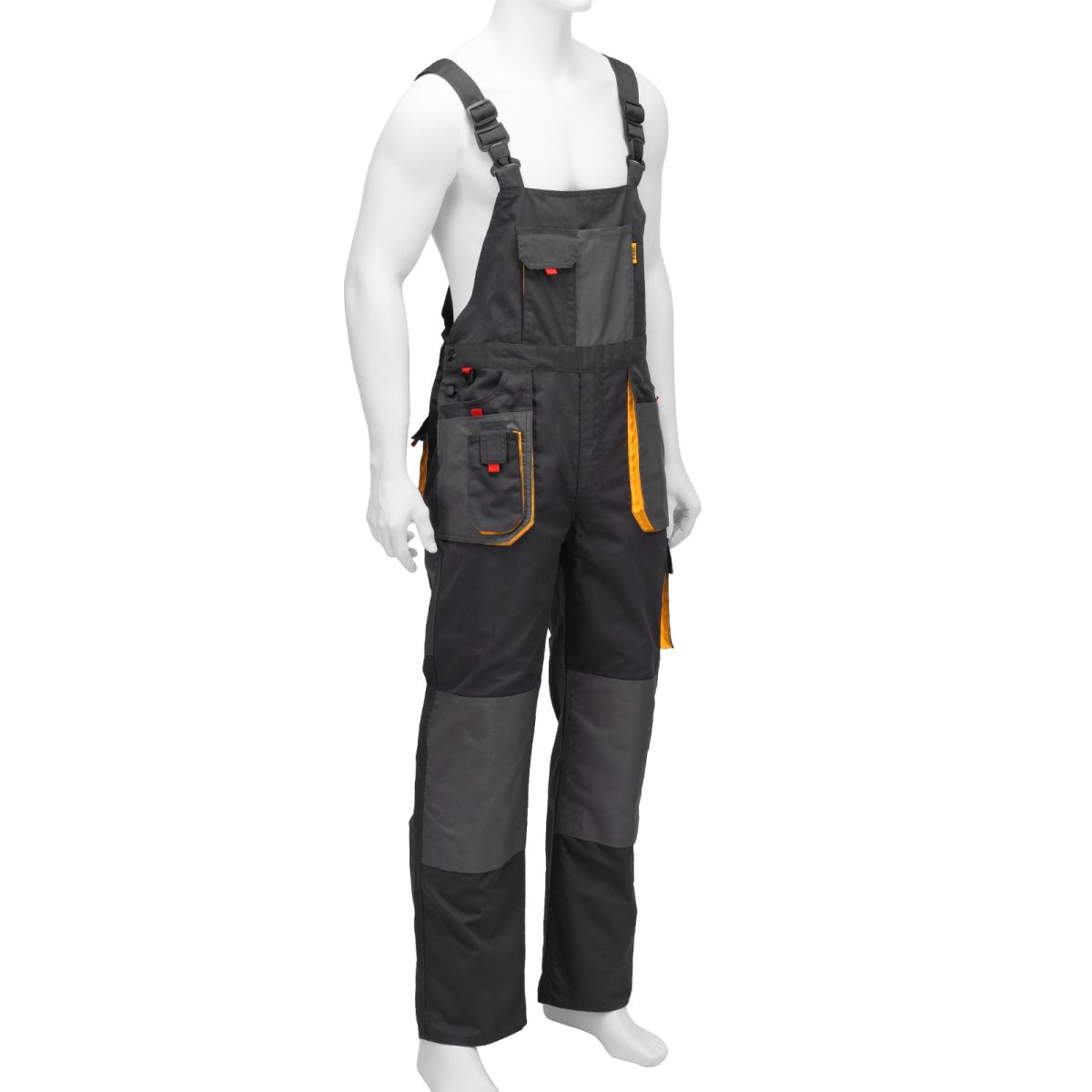 Рабочий полукомбинезон Denzel 90387 размера M рассчитан на рост 172-178 см и используется для выполнения профессиональных строительных, ремонтных и производственных работ в теплое время года или в отапливаемом помещении. Защищает пользователя от общих производственных загрязнений, нетоксичной пыли, ветра и незначительных механических воздействий. Изготовлен из ткани плотностью 260 г/м2 (65% полиэстер, 35% хлопок). За счет наличия хлопковых волокон в составе ткань хорошо пропускает воздух и приятна на теле, полиэстер обеспечивает устойчивость к истиранию. Полукомбинезон выполнен в практичном темно-сером цвете. ПреимуществаПрочность и высокий ресурс — в местах наибольшей нагрузки имеются тройные усиленные швы, на коленях и карманах — дополнительные усиленные вставки из плотной непромокаемой ткани. Большое количество карманов — полукомбинезон снабжен специальными отделениями для инструментов, а в карманах с «липучками» можно разместить мобильный телефон, крепеж и необходимые мелочи. Защита колен — в специальных карманах можно разместить амортизационные вкладыши (приобретаются отдельно). Комфортное использование — эластичный пояс с регулировкой объема талии и регулируемые по длине лямки обеспечивают удобную посадку.