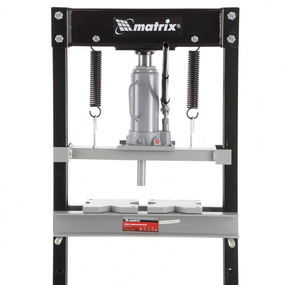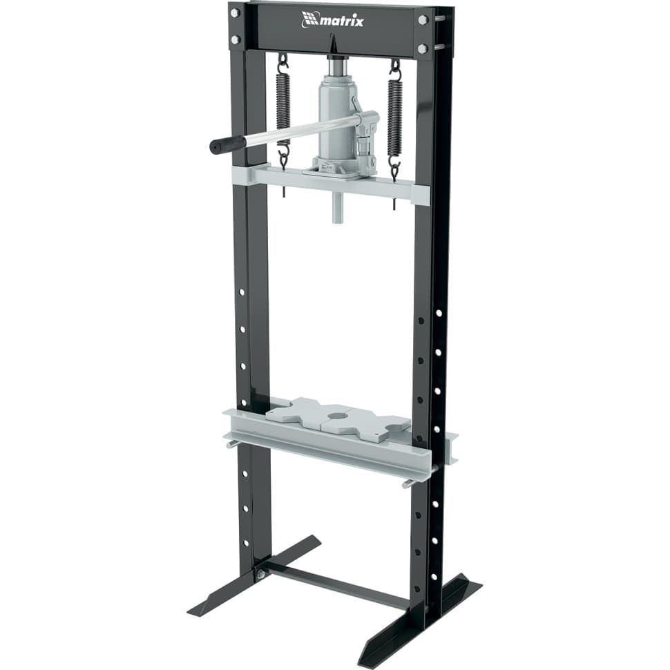Гидравлический пресс Matrix 523105 размером 1360 х 500 х 510 мм, воздействующий на детали с усилием 12 т, поставляется комплектом из 2 частей. Используется для запрессовки и выпрессовки различных деталей, необходимых для ремонта автомобилей. Изготовлен из толстого прочного металла и имеет простую разборную конструкцию из верхней и нижней балок, стоек, станин и гидравлического бутылочного домкрата. Пресс подойдет для самостоятельного использования в гараже. ПреимуществаУдобная работа с деталями различного размера — высота подъема рабочего стола регулируется. Эффективное решение широкого спектра задач — опорные пластины позволяют фиксировать предметы разной формы. Комфортная эксплуатация — после спуска давления шток самостоятельно возвращается в исходное положение.