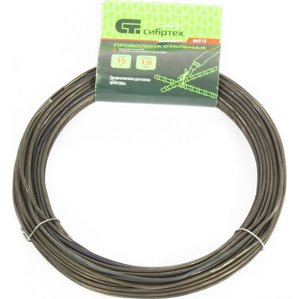 Проволока стальная, 15 м, вязальная, термообработанная 1,8 мм// Сибртех