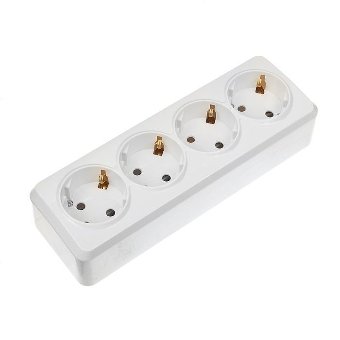 Розетка 4-местная 16А с заземлением белая «Юпитер»