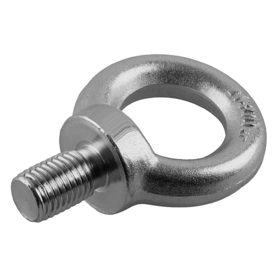 Рым-болт применяется для поднятия тяжелых деталей и узлов машин. Рым-болт вместо головки имеет кольцо, предназначенное для захвата деталей и агрегатов при их транспортировке, сборке и разборке. Грузовой болт с кольцом (рым-болт) изготавливается из специальной ударопрочной стали и имеет надежное защитное покрытие