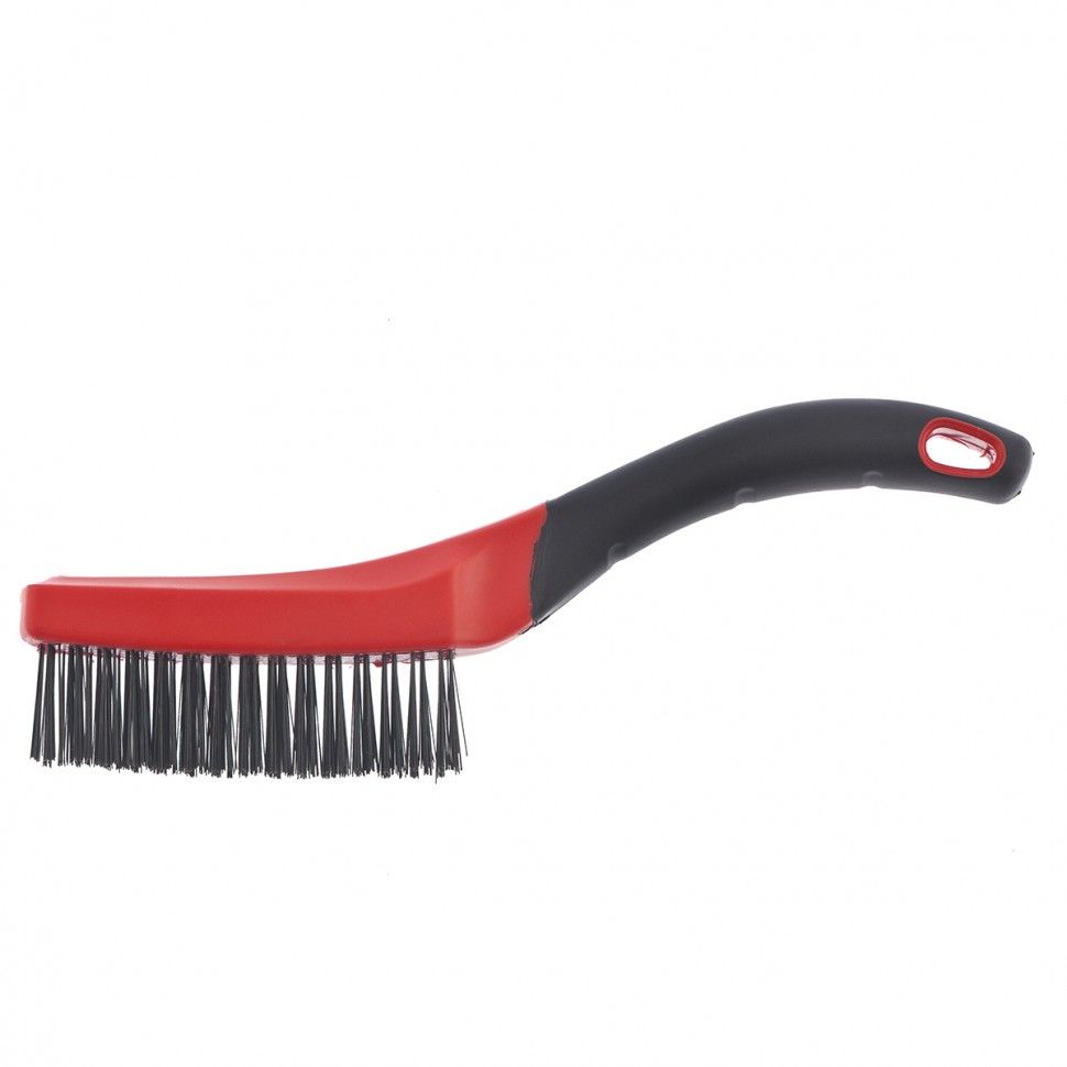 Зачистная четырехрядная щетка Matrix 74834 с двухкомпонентной рукояткой очищает от ржавчины, въевшейся грязи и краски металлические, деревянные и другие поверхности. Расположенные в 4 ряда пучки проволоки обеспечивают высокое качество обработки. Изогнутая рукоятка позволяет полностью задействовать рабочую поверхность щетины. Щетка будет полезна строителю, автослесарю и домашнему мастеру. ПреимуществаВысокая производительность — щетина изготовлена из высококачественной стальной проволоки. Крепкая фиксация пучков проволоки в основании — щетина не разлетается в процессе зачистки. Надежный хват — эргономичная двухкомпонентная обрезиненная рукоятка не выскальзывает из ладони. Удобное хранение — в рукоятке имеется отверстие для подвешивания щетки.