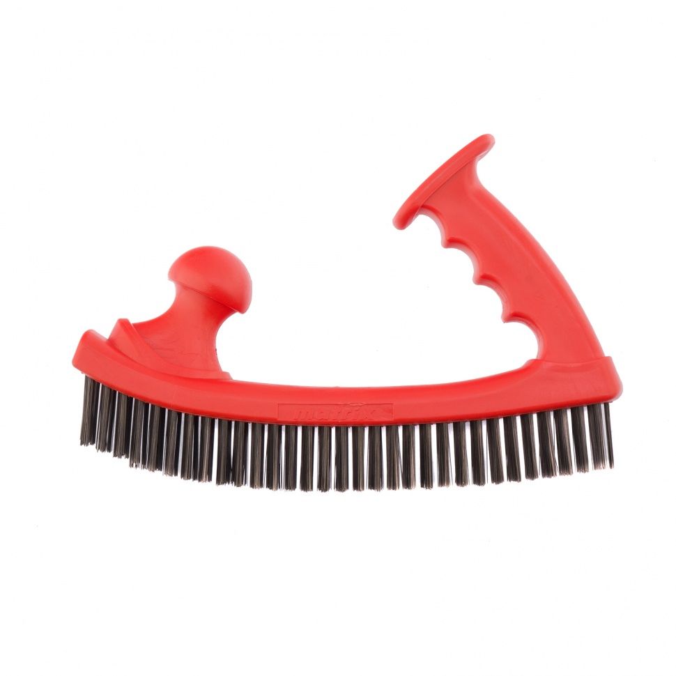 Двуручная пластиковая зачистная щетка Matrix 74830 эффективно очищает металлические, деревянные и другие поверхности от въевшихся загрязнений, ржавчины, старых лакокрасочных покрытий. 5-рядная щетина обеспечивает высокую скорость обработки. Двуручная конструкция позволяет проводить зачистку со значительным усилием. Щетка пригодится строителям, ремонтникам, автослесарям, а также будет полезна в быту. ПреимуществаНадежность — щетина из прочной стальной проволоки устойчива к деформации и не выпадает во время работы. Долговечность — прочный пластиковый корпус не подвержен коррозии и рассыханию. Комфортная работа — эргономичные рукоятки обеспечивают надежный хват.